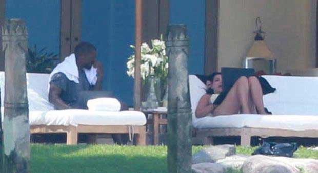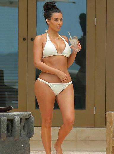 Meksika'da Punta Mita'da bir arkadaşının villasında ikinci balayına çıkan Kardashian krem rengi bikinisiyle objektiflere takıldı.