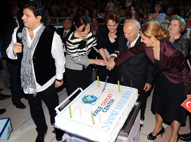 Kale Outlet Center'ın 5. Senesini kutlamak için Kale Endüstri Holding Yönetim Kurulu Onursal Başkanı Sadık Özgür, Kale Outlet Center Yönetim Kurulu Başkanı Sema Gürün, Kale Outlet Center Yönetim Kurulu Üyeleri Sefa Çizer ve Sadakat Saylam katılımıyla ünlü sanatçı Kubat ile sahneye getirilen pastayı kesti. "Başarıyla nice mutlu senelere" dilekleriyle kesilen pasta ziyaretçilere dağıtıldı.