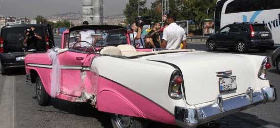 Bostancı'dan gelin ve damadı alan Bilen, fotoğraf çekimi için Beşiktaş Yıldız Parkı'na doğru yola çıktı.