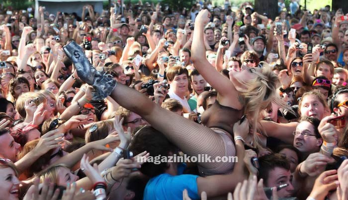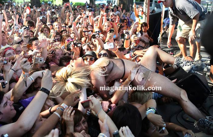 Chicago'da düzenlenen Lollapozza festivalinde üç yıl önce şöhret olmadan önce girdiği seksi kıyafeti tekrar giyerek sansasyon yarattı...