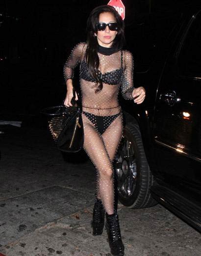 Geçtiğimiz Pazar günü, sokakta kısacık bir şortun üstüne giydiği siyah sutyeniyle görüntülenen Lady Gaga, aynı akşam da Los Angeles'taki ünü Chateau Marmont Otel'de katıldığı bir davette giydiği transparan giysiyle dikkatleri üzerine çekti.
