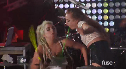 Ünlü şarkıcı Lady Gaga'nın dansçılarından Millie Brown'un elini boğazına sokarak canlı performans sırasından Lady Gaga'nın üzerine kusması görenlere şaşkınlık yaşatırken güzel şarkıcının değişik performansı kafaları karıştırdı.
