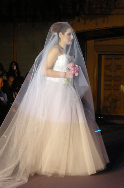 Gamze Karaman ve Murat Başoğlu'nun sunduğu defilede, Simge Tertemiz, İpek Tanrıyar, Yeliz Öney gibi ünlü mankenlerin yanı sıra bir dönemin Gazinocular Kralı Fahrettin Aslan'ın torunu Elis Aslan da beyaz gelinlikle podyuma çıktı.