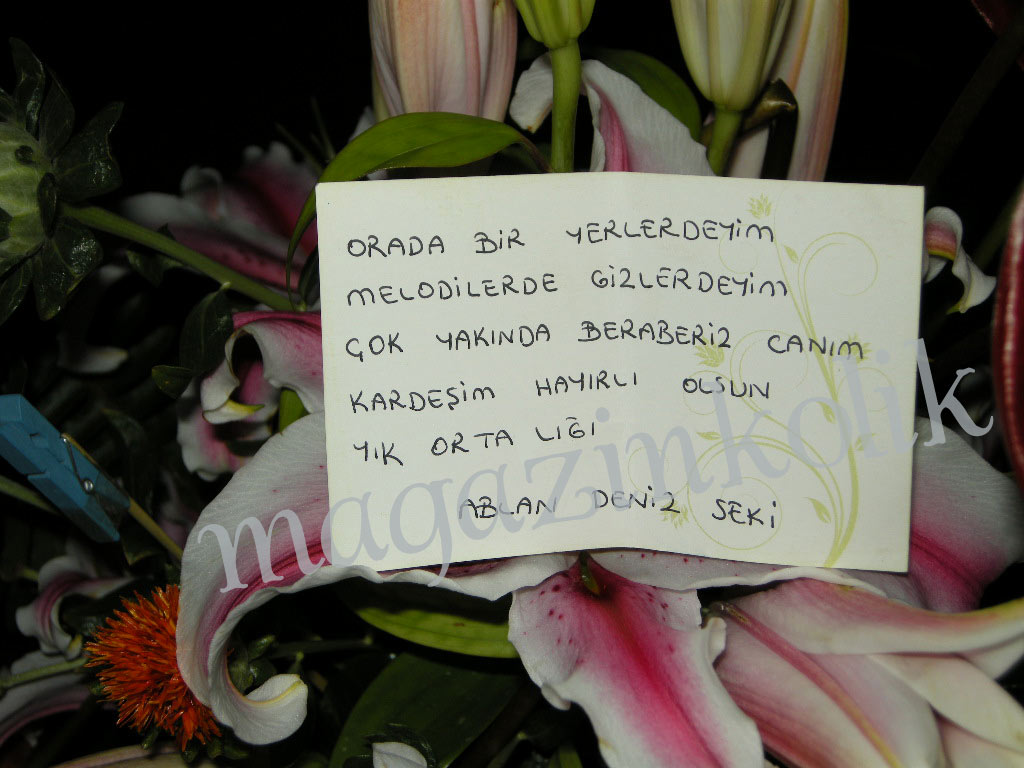 Serkan'ın özleine saklayıp sahneden paylaşmadığı, ne var ki Magazinkolik.com objektifinin "zoom" yaptığı çiçek, şuan cezaevinde olan abla Deniz Seki'den geliyor ve bakın üzerinde neler yazıyordu?..