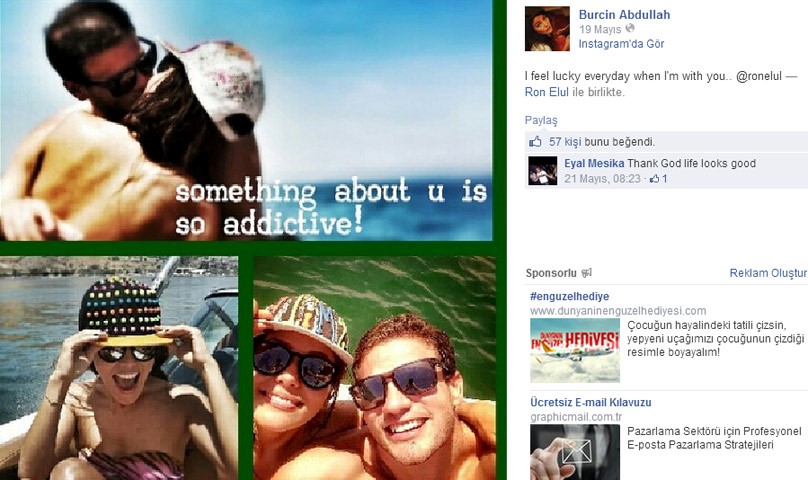 Yaşanan bu aşkı saklamayan ve adına açılmış sosyal medya sitelerinde sürekli paylaşımlarda bulunan Burçin Abdullah'ın sevgilisi Ron Elul, 2008 yılında babasının başkanı olduğu İSHRA adlı kuruluşta çalışmaya başlamış ve 2010 yılında İngiltere'deki Sunny Britain adlı şirkete transfer olmuş... Ron 2 yıl da burada çalıştıktan sonra yeniden babasının kanatları altına girmiş ve halen İSHRA'da "managing partner" (firmanın günlük işlerini yürütmekle görevli ortak) olarak iş hayatına devam ediyor...