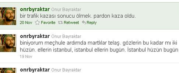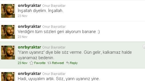 Twitter'a en son 23 kasım günü giren Onur Bayraktar'ın 15 dakika içinde yazdığı son 4 Twiti çok ilginçti;