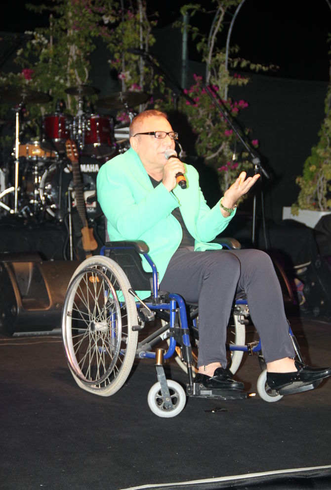 Mehmet Ali Erbil, Kıbrıs'ta bayramın ilk günü sahneye tekerlekli sandalyeyle çıktı.