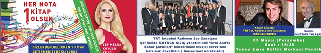 Sosyal medyada büyük yankı bulan Her Nota Bir Kitap Olsun kampanyası çerçevesinde ‘Avni Anıl ve Bahar Şarkıları’nın yer alacağı konserin sunuculuğunu TRT’nin duayenlerinden Mustafa Yolaşan yaparken TRT sanatçısı sevilen seslerinden Gökhan Sezen de konuk sanatçı olarak yer alacak.
