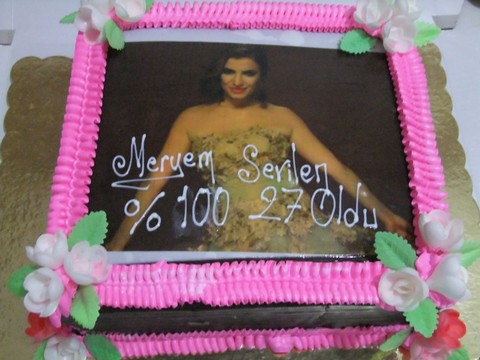Gece yarısında alkışlarla club şefinin üzerinde ''Meryem Sevilen %100 27 oldu' yazısı olan ve sanatçının resmi bulunan pastayı sahneye getirmesiyle sürpriz yaşayan ve programına ara veren güzel sanatçı, pastayı kulüb çalışanlarıyla birlikte kesiti.
