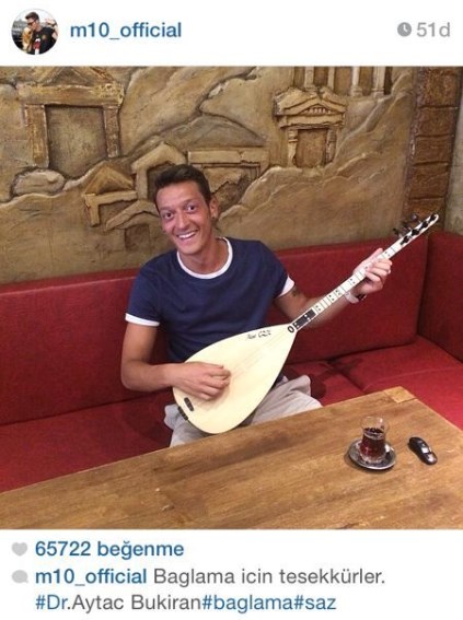 Türk asıllı Alman milli futbolcu Mesut Özil, bağlama çaldı.