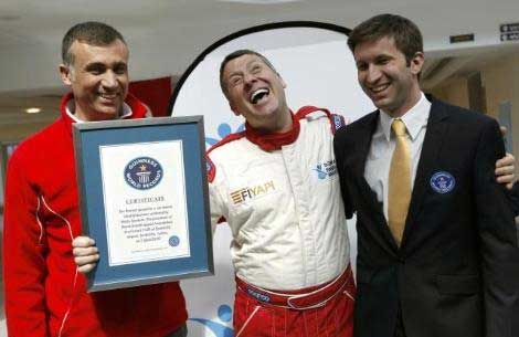 Görme engelli İngiliz Mike Newman'a ait 284 kilometre hızı geçen Metin Şentürk, gözyaşlarına hakim olamadı.