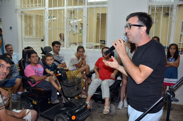 Tiyatro sanatçısı Metin Zakoğlu, Bodrum`daki bir köy kahvehanesinde köylüler ve engelli vatandaşlar için gösteri sundu.