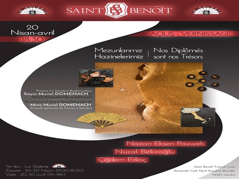 Fransa’nın İstanbul Başkonsolosu Sayın Muriel Domenach’ın da katılımıyla açılışı gerçekleştirilecek "Mezunlarımız Hazinelerimiz" isimli sergi 20 Nisan Çarşamba günü Saint Benoit Lisesi La Galerie’de sanatseverlerle buluşacak.