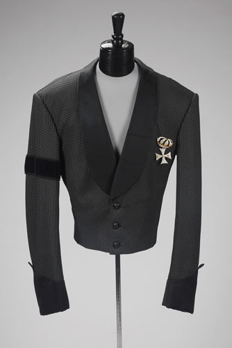 13-Kırmızı satenlerle süslü siyah kadife ceketi:3000 dolar