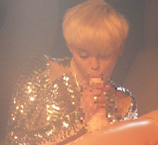 Sahneye cinsel organından tutarak getirdiği erkek şişme bebekle önce konuşan Miley Cyrus, ardından şişme bebeğe oral seks yaptı.