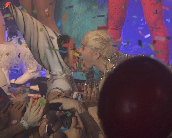 Miley Cyrus... YİNE YAPTI YAPACAĞINI!.. GAY VE BİSEKSÜELLERİN GECESİNDE BİR SKANDAL DAHA...