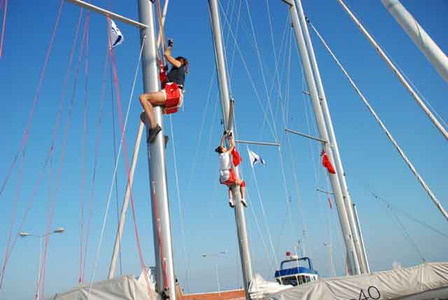 40 metrelik yelken direğine tırmanıyorlar. Koca bir yelkenliyle açık denizde mücadele ediyorlar?