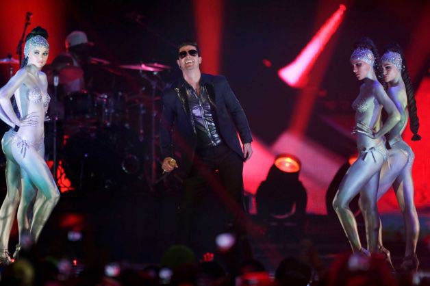 Törene birçok sanatçı katılırken, Robin Thicke, Miley Cyrus, Redfoo, Katy Perry sahne performanslarıyla geceyi renklendirdi.