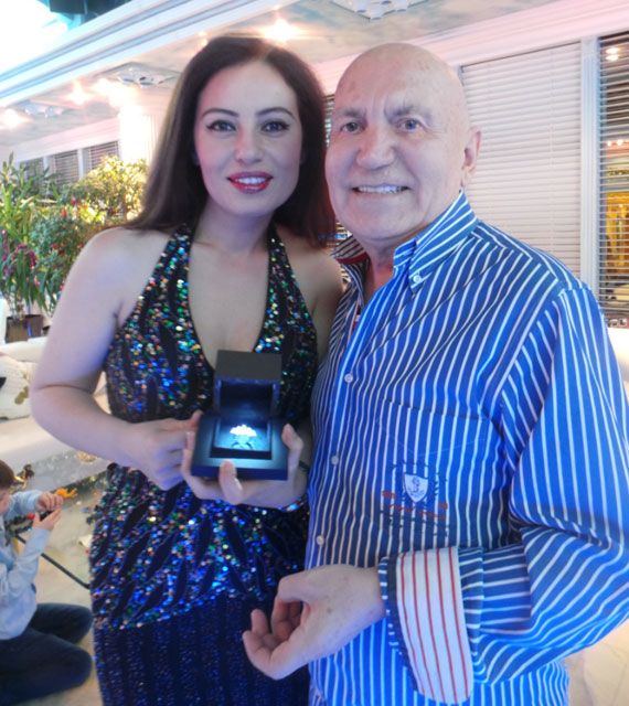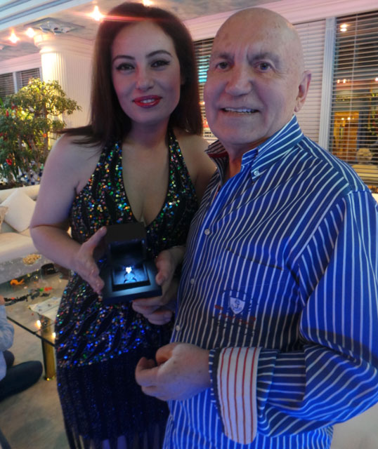 Eşine aldığı 5 taşlı alyans ve tek taş pırlanta yüzük görenlerin gözünü kamaştırdı.