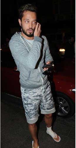 Ünlü popçu Murat Boz, bandajlı ayağıyla objektife takıldı.