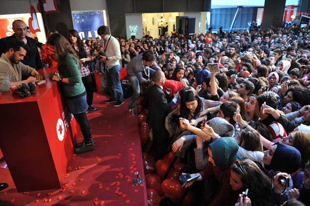10 bin kişiye yakın hayranları büyük izdiham yaratırken hınca hınç doldurdukları Marmara Forum'da fotoğraf çektirmek için birbirleriyle yarıştı.