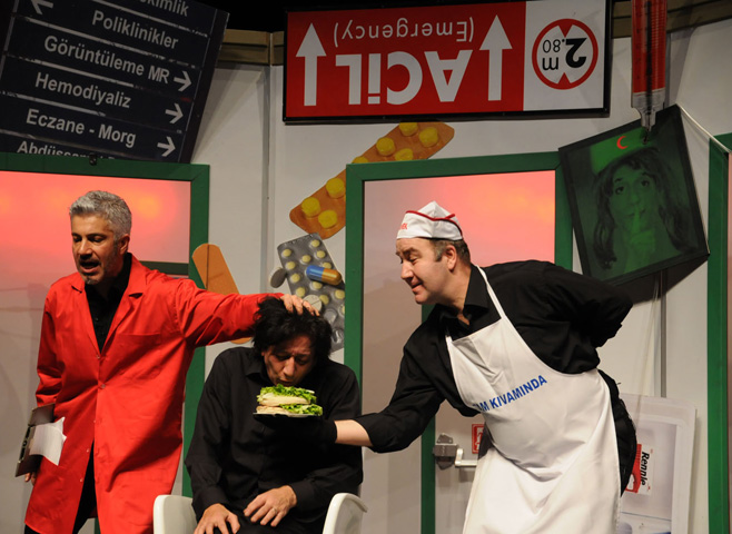 Süheyl-Behzat Uygur kardeşler "Hassta Etme Adamı" adlı yeni oyunlarında sağlık sistemini tiye alıyorlar. Bu arada evde hasta yatağında olan babalarına da yeni oyunlarının sahnesinde ilginç bir yöntemle yer verdiler.