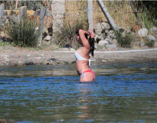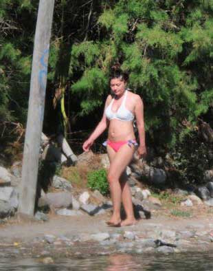 Kız arkadaşlarıyla beraber denizin ve güneşin tadını çıkartan ünlü oyuncu plajda ilgi odağı oldu. Bir çocuk annesi 38 yaşındaki Yeşilçay, düzgün fiziğiyle dikkat çekti.