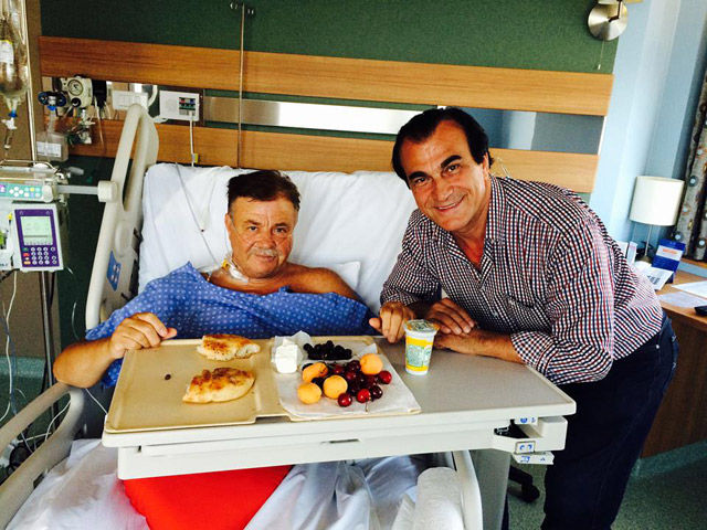Alço’yu hastanede ilk ziyaret edenlerden biri de dostu sanatçı Ümit Besen ve yakın arkadaşı oyuncu Teoman Ayık oldu.