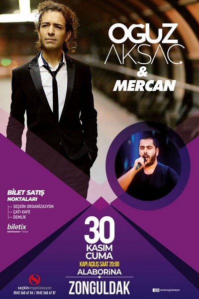 Türk Halk Müziği'nin sevilen ismi Oğuz Aksaç ve O ses Türkiye ile müzik severlerin kalbinde taht kuran Mercan, 30 Kasın Cuma akşamı Zonguldak'ta muhteşem bir konsere imza atmaya hazırlanıyor.