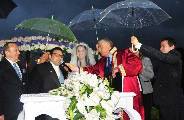 Okan Karacan-Zeynep Kadıoğlu çiftinin , Soma`da yaşanan maden faciası nedeniyle ertelenen düğünü bu defa sağnak yağmur altında gerçekleşti.