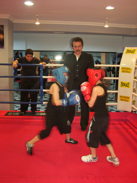 Yakın dostu ve eski milli boksör Nafiz Başaran'ın Beşiktaş'ta Barbaros Bulvarı'nda yeni açtığı boks spor salonunun kurdelesini kesen Orhan Gencebay, daha sonra ringe çıktı ve hakemlik yaptı.-FOTO GALERİ-