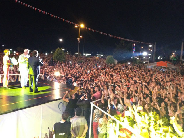 Orhan Gencebay'ı izlemek için sokak aralarını dahi dolduran halkın sanatçıyı rahat izleye bilmesi için meydanın 12 noktasına dev ekranlar kuruldu.