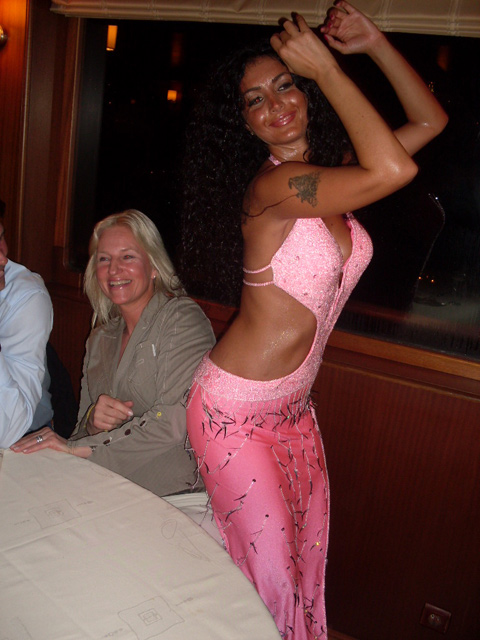 Oryantal Dora'nın kıvrak dansları karşısında bir hayli eğlenen konuklar, aynı zamanda sahneye çıkarak Dora ile birlikte karşılıklı göbek attılar ve ünlü oryantale para yapıştırmak için birbirleri ile yarıştılar.