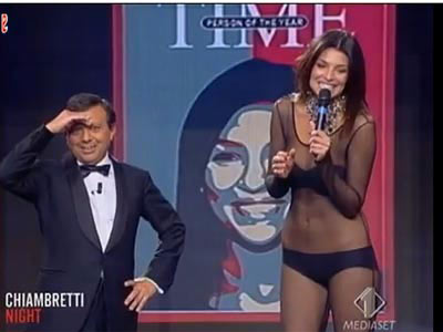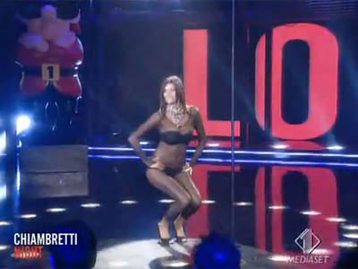 Siyah bir transparan body elbise giyen italya güzeli içinede sadece siyah bir sütyen ile külot giydi...Program yayınlandığı sırada televizyonda maç seyredelenlerin devrearasında kanal değiştirdikleri tespit edildi...Program haftanın rayting rekorunu da kırdı...