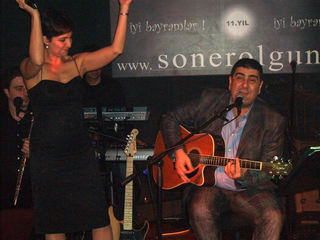 Bu arada Hakan Aysev, mikrofonu eline alarak Çiçeği burnunda eşi Pelin Doğan'a serenat yapmaya başladı?