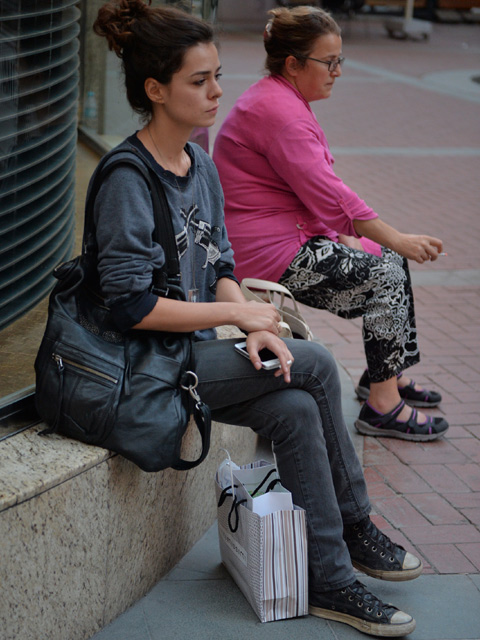 Çıkışta aracını beklerken binanın köşesine oturan güzel oyuncu bir ara daldı gitti.