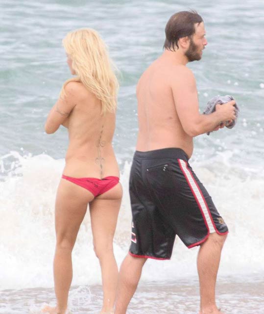 Eski eşi ve yeni sevgilisi Rick Salomon`la birlikte Fransa`da tatil yapan 46 yaşındaki Pamela Anderson, denizde adeta şov yaptı. -FOTO GALERİ -