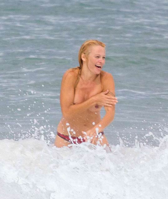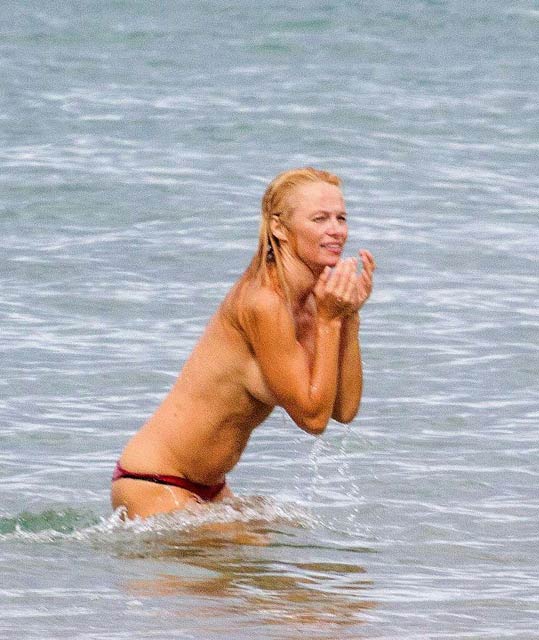 Seksi fiziği nedeniyle 13 kez Amerikan Playboy dergisine kapak olan ve 'Sahil Güvenlik' dizisindeki rolüyle yıldızlaşan Pamela Anderson, bikinisinin üstünü Akdeniz'in azgın dalgalarına kaptırdı...