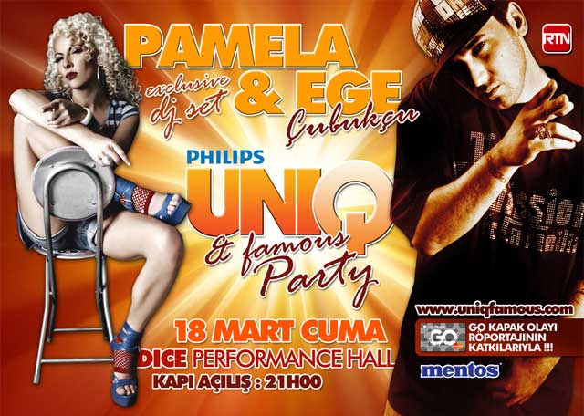 Pamela Spence 18 Mart'ta İzmir'de Dice Perfomance Hall'de Uni Famous dergisinin kutlama gecesi için ilk kez DJ lik yapacak.