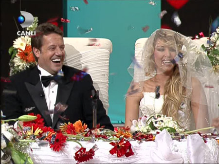 Reklam dönüşünde sahnede beyazlar içindeki nikah masası izleyenleri karşıladı ve çiftin nikahı Beşiktaş Belediye Başkanı İsmail Ünal tarafından canlı yayında kıyıldı.