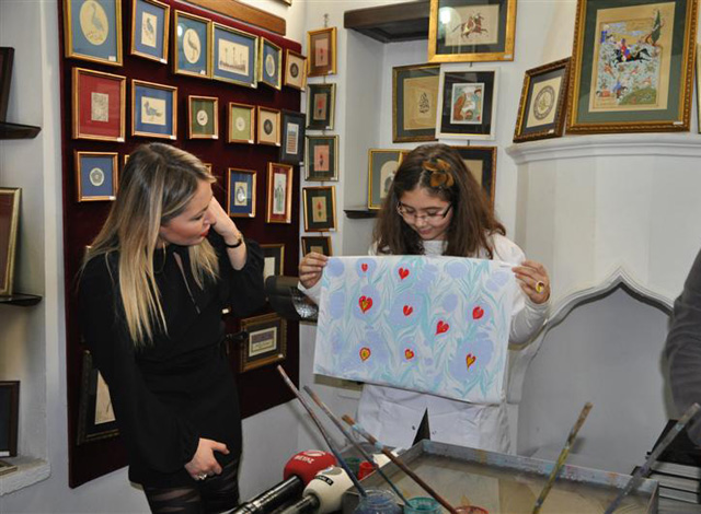 Mimar Sinan'ın eserlerinden biri olan Caferağa Medresesi'nde yer alan atölyede el sanatları derslerine giren Maya ve arkadaşları özellikle Ebru ve Cam Boyama yaparken çok eğlendiler.