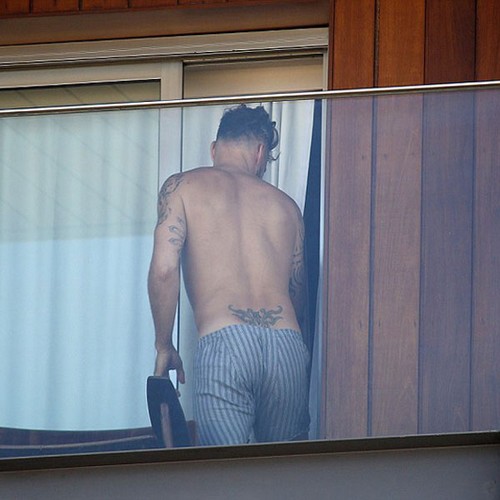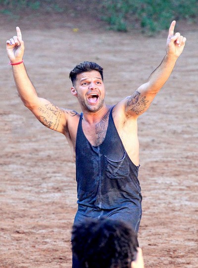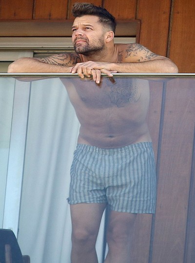 Latin Amerika'nın en yakışıklı erkeklerinden biri olarak tescillenen ünlü şarkıcı Ricky Martin Brezilya'da bir otelde görüntülendi. Göbeğinde, bacağında ve vücudunun bir çok bölgesinde dövmeleri ile görüntülenen ünlü şarkıcı ilerleyen yaşına rağmen düzgün fiziği ile dikkat çekti.