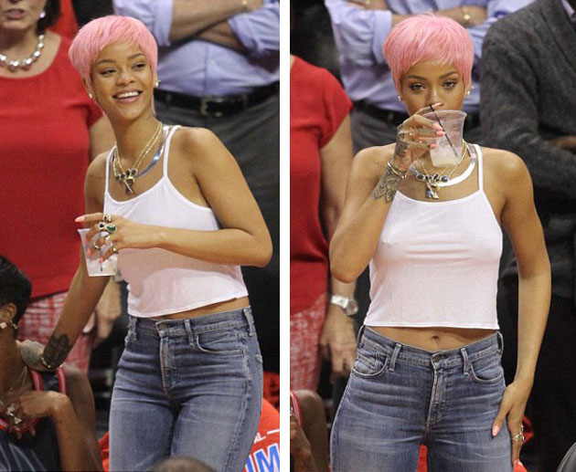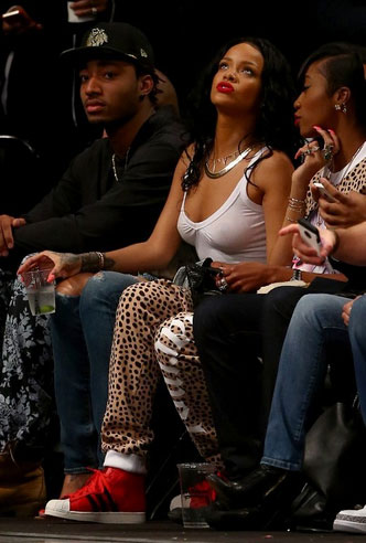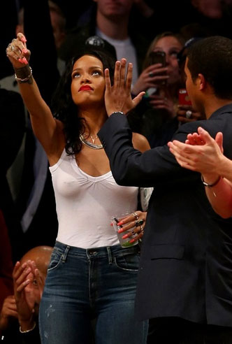 Rihanna... BASKET MAÇLARINDA SÜTYENSİZ, YA FUTBOL MAÇLARINDA?