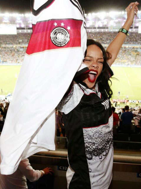 Barbados'lu şarkıcı Rihanna Almanya'nın zaferi nedeniyle oldukça mutlu görünüyordu.