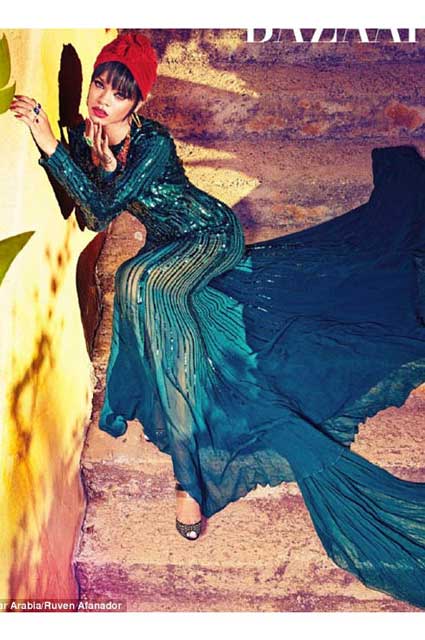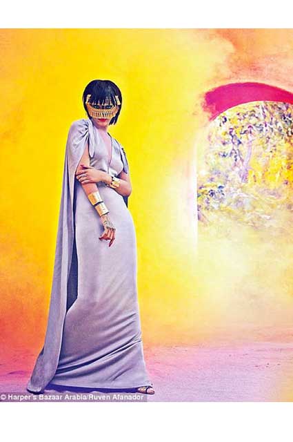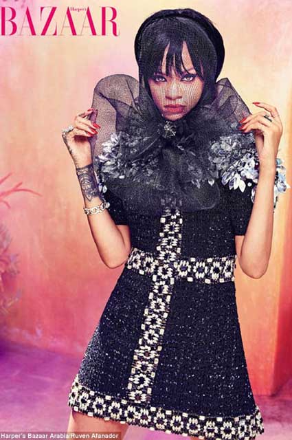 Çıplaklığı ön plana çıkarmayı seven Rihanna, ünlü moda dergisi Harper`s Bazaar`ın Arabistan kapağı için bu kez kapandı!