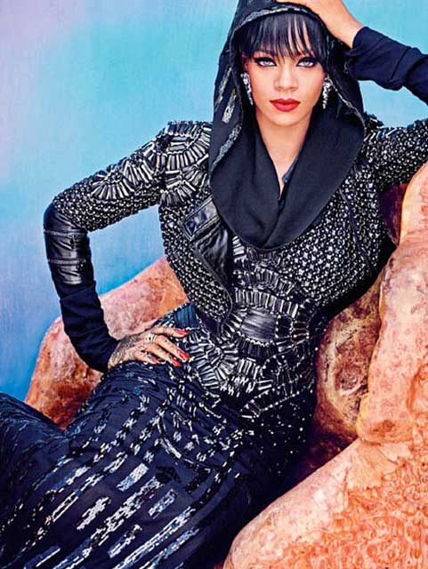 Dergi için daha muhafazakar kıyafetler giyinen Rihanna, bu haliyle de çok beğenildi.