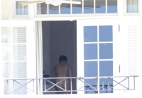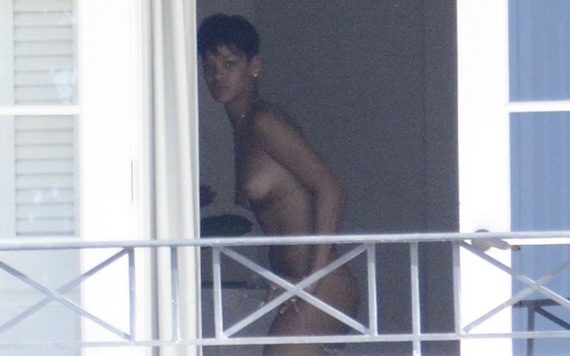 Balkon kapısı açık olan Rihanna paparazzilerin kendisini fotoğrafladığını gördü. Ancak hiç bu duruma aldırmadan bikinisi değiştirmek için tamamen soyundu.