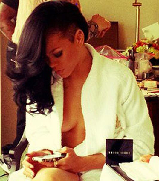 Rihanna bu defa da twitter hesabında kulisteki bornozlu resimlerini paylaştı.