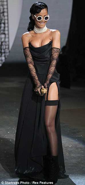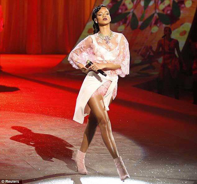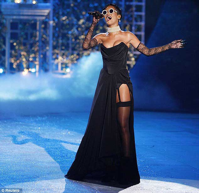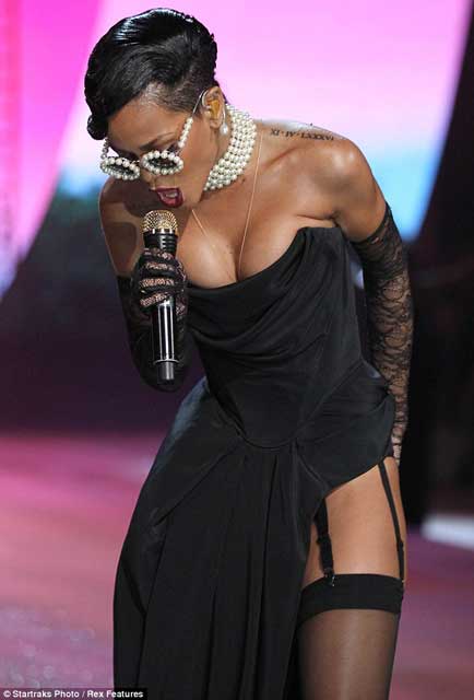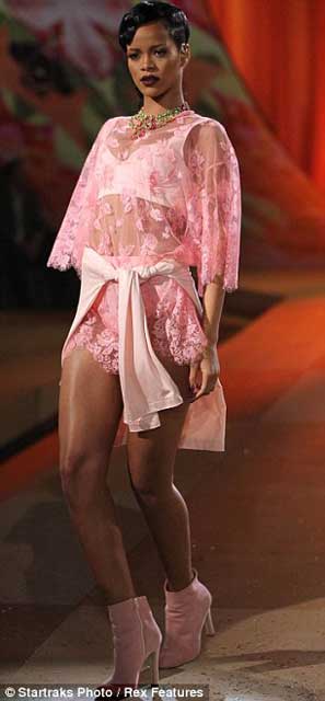 Marjinal tavırlarıyla dikkat çeken Barbadoslu şarkıcı Rihanna, Victoria's Secret defilsinde ünlü top modellerle podyuma çıktı...