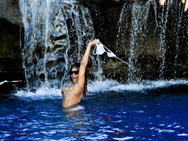 Seksi beyaz bikinisinin üstünü çıkarıp birbirinden şehvetli pozlar veren şarkici yine göz kamaştırıyor.
